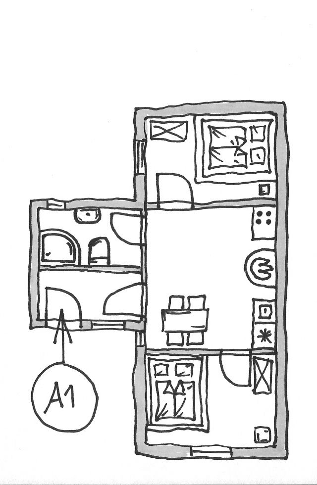 Квартира A1 = 3-комнатная квартира, 40м², на 1. этаже, на 4 человекa: