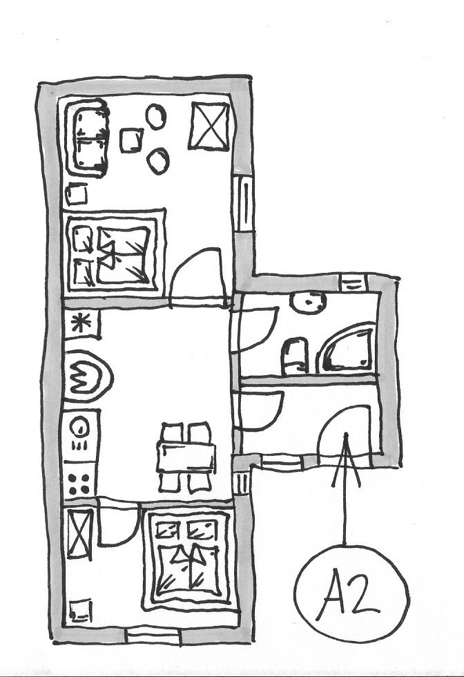 Apartment A2 = 3-room apartment, 50sqm, on the ground floor, for 4-5 guests: