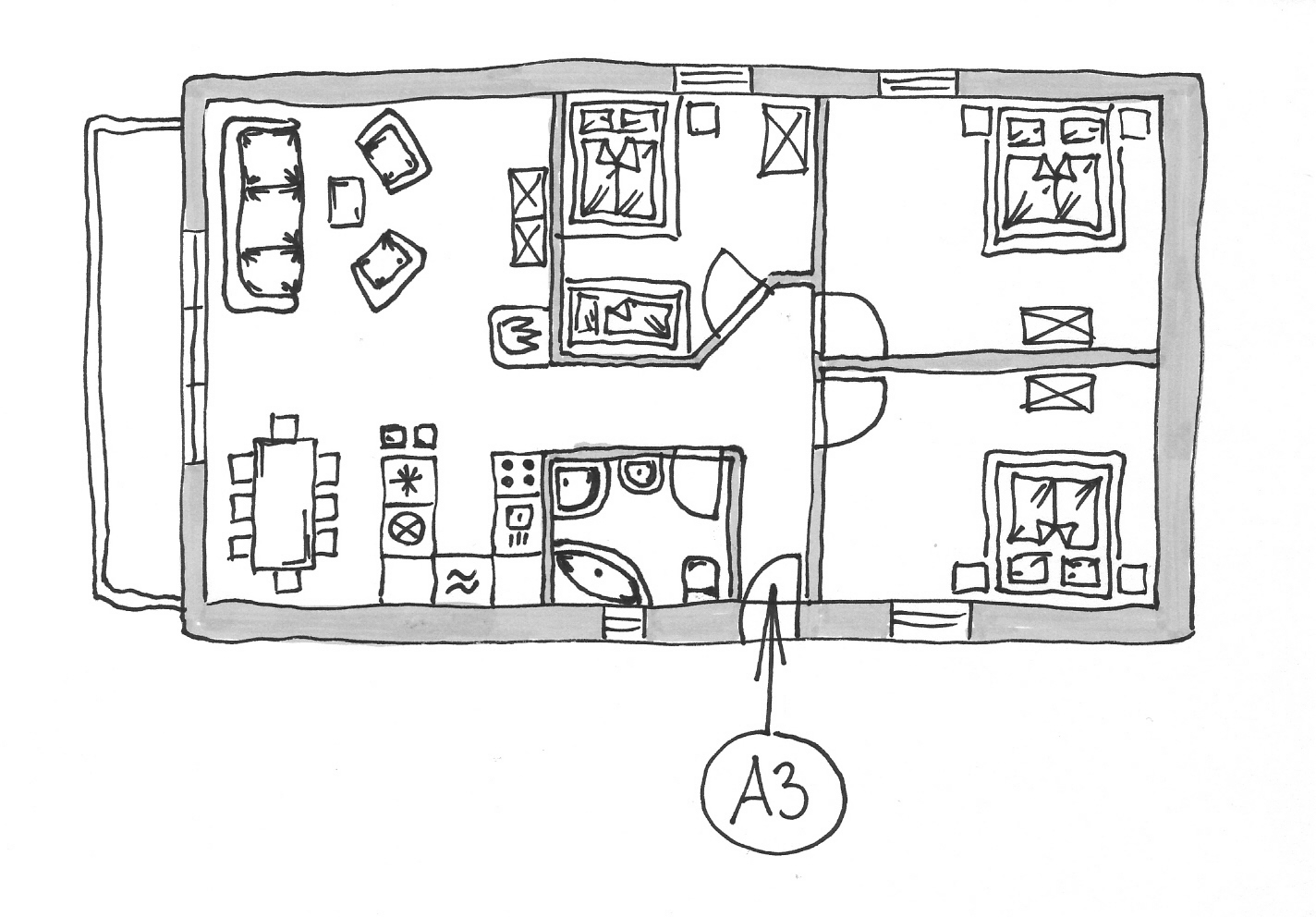 Apartment A3 = 4-room apartment, 80sqm, on the 1. floor, for 8-10 guests:
