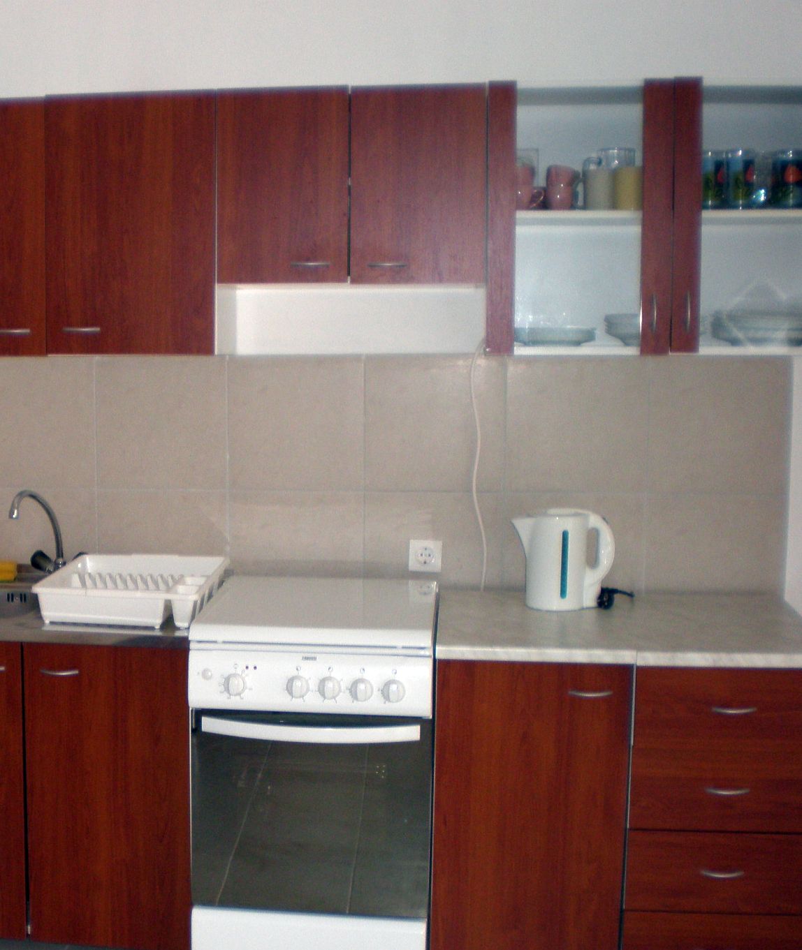 Apartmán A1 = 4-izbový byt, 80 m², prízemie, pre 5-7 osôb:  obývacia izba s rozkladacou pohovkou a jedálenským stolom, TV, otvorená kuchyňa (sporák, chladnička s mrazničkou, kanvica, riad a príbory), 1 spalná s 1 manželskou posteľou, 1 spálňa s 2 samostatnými lôžkami, 1 spálňa s 1 samostatným lôžkom, sprcha / WC, tienená terasa so záhradným nábytkom, dobrý výhľad na more.